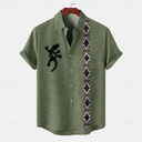 Homme Chemise Chemise Lin chemises rétro Chemise Vintage Chemise ethnique Ethnique Travail Casual Bleu Vert Kaki Manche Courte Col rabattu Eté Printemps Vêtement Tenue
