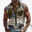 Homme Bloc de Couleur Comme du denim Chemise Chemise Western Chemise de cow-boy Sans manches Style Western Extérieur Travail Décontracté Été Printemps Col Rabattu Impression 3D Deux poches avant