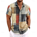 Homme Chemise Chemise Lin chemises rétro Chemise Vintage Chemise ethnique Ecossais à Carreaux Extérieur Intérieur Bleu Kaki Gris Manche Courte Col rabattu Eté Vêtement Tenue |