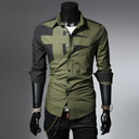 Homme Chemise Chemise à col Chemise boutonnée Bloc de couleur Mariage Extérieur Armée verte. Noir Blanche Vin manche longue Col Printemps Automne Vêtement Tenue Patchwork |