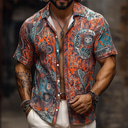 Homme Bohème Vintage Indien Chemise Chemise hawaïenne Chemise Boutonnée Manche Courte Hawaïen Vacances Fête Tenue de plage Été Printemps Col Rabattu Impression 3D chemises à col Bleu Orange |