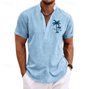 Homme Chemise Chemise Lin Chemise de plage Chemise hawaïenne Cocotier Extérieur Vacances Bleu Roi Bleu Vert Kaki Manche Courte Mao Eté Printemps Vêtement Tenue Imprimer |