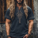 Homme Chemise Chemise Décontractée Viking Vacances Hawaïen Bleu de minuit Manche Courte Col en V Été Printemps Vêtement Tenue Ethnique et Religieux |