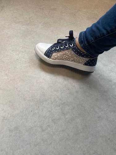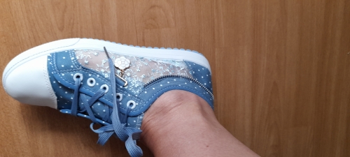 Very pretty lace and denim sneakers for that something extra. Recommended. Very pretty lace and denim sneakers for that something extra. Recommended.