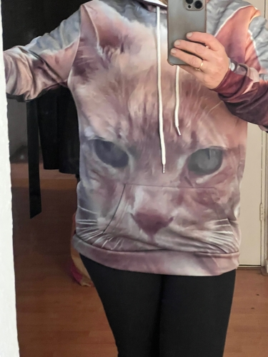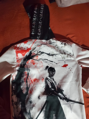 The print is really nice, so happy with the pictures on fabric and it makes for a great gift! I’d expected it to be a bit more bulky because of being a man’s size, it fits but isn’t a jumper to ‘drown’ in. The material is very synthetic, but it’s well made.