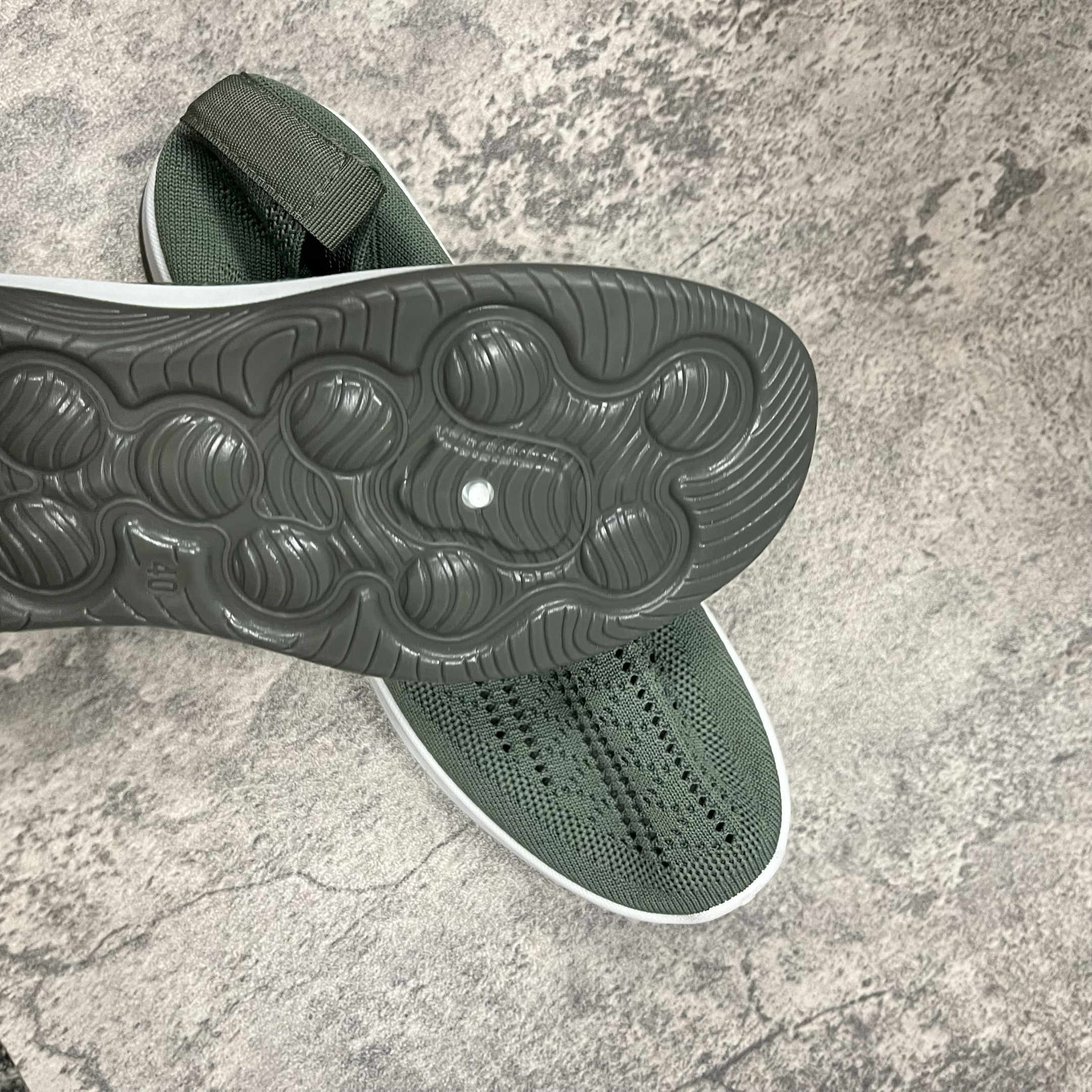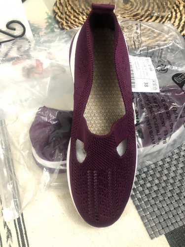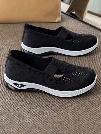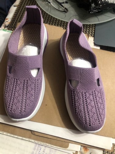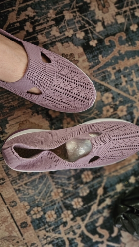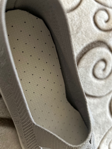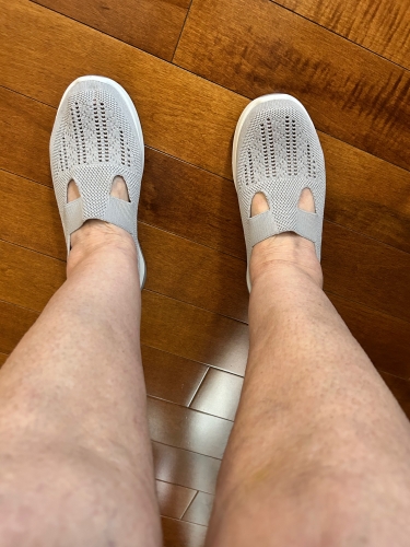 These black slip-on sneakers are extremely flexible. Nice, stylish white racing stripe. Elastic stretch band across the front. Raised heel. Cushioning bubbles on soles. Breathable mesh material, although rough to the touch. They fit a US size 8. Order a half size up to add an inner sole for added comfort. These black slip-on sneakers are extremely flexible. Nice, stylish white racing stripe. Elastic stretch band across the front. Raised heel. Cushioning bubbles on soles. Breathable mesh material, although rough to the touch. They fit a US size 8. Order a half size up to add an inner sole for added comfort.