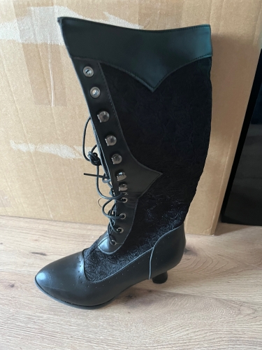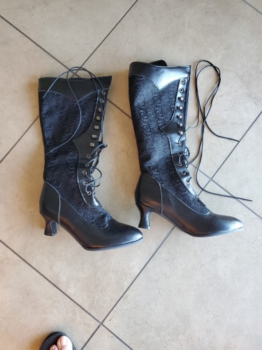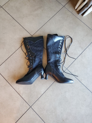 boots fit well as I checked size chart. they are front lace up, so no zipper. purchased for a dance performance of Chim Chim Cheree and are perfect style. I do need to convert from street boots with rubber ridged bottoms small anti skid ridges, to dance boots for hard wood floors as I will like to glide thru my viennese waltz. boots fit well as I checked size chart. they are front lace up, so no zipper. purchased for a dance performance of Chim Chim Cheree and are perfect style. I do need to convert from street boots with rubber ridged bottoms small anti skid ridges, to dance boots for hard wood floors as I will like to glide thru my viennese waltz.