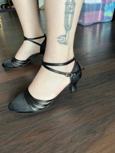 Comfy dance shoes, love them. Ive done multiple hour long ballroom dance classes in them so far and they stay secure on my feet and I dont have trouble with blisters or foot pain. The fit is goodI was surprised by the buckle as Id never seen one in the style before and worried it would come undone mid-dance. Not the case, luckily! They stay on perfectly and are still nice and easy to get on and off when desired. Comfy dance shoes, love them. Ive done multiple hour long ballroom dance classes in them so far and they stay secure on my feet and I dont have trouble with blisters or foot pain. The fit is goodI was surprised by the buckle as Id never seen one in the style before and worried it would come undone mid-dance. Not the case, luckily! They stay on perfectly and are still nice and easy to get on and off when desired.
