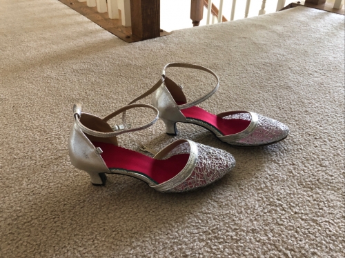 chaussures de danse en maille argentée pour femmes – talons bas pour salle de bal latine avec bride à la cheville pour mariages et événements spéciaux