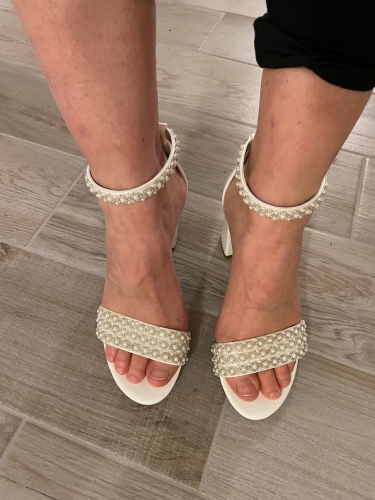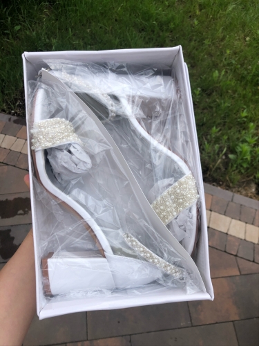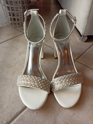 Lovely comfortable shoes but slightly bigger than a standard UK size 6. A couple of pearls came off the ankle strap but customer service resolved this issue. Quick delivery. Lovely comfortable shoes but slightly bigger than a standard UK size 6. A couple of pearls came off the ankle strap but customer service resolved this issue. Quick delivery.