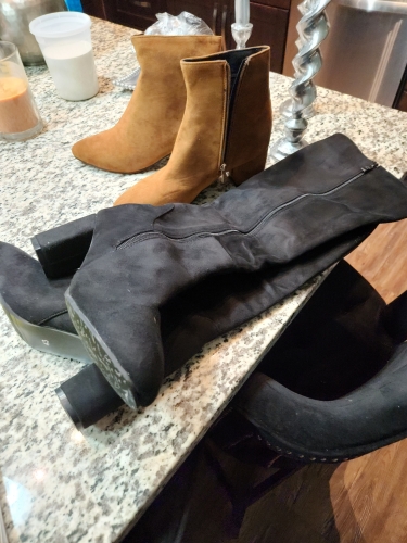 Nice knee high boots. Comfortable to wear. I have quite biggish calves but they did zip up with a bit of effort but will stretch with wear. Nice knee high boots. Comfortable to wear. I have quite biggish calves but they did zip up with a bit of effort but will stretch with wear.