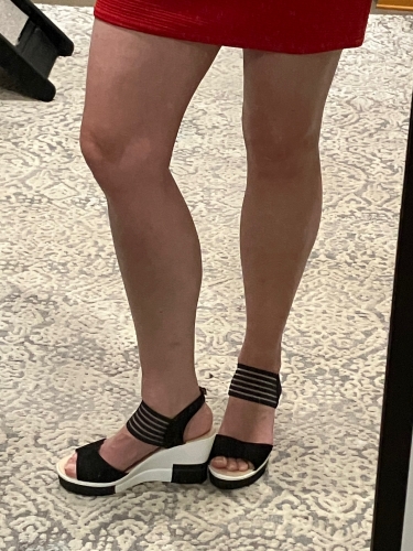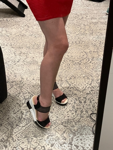 Very comfortable and easy to walk in. Front ankle strap is elastic which makes it easy to move when walking. Had a scratch when I got it but happy with overall size and is like the pictures Very comfortable and easy to walk in. Front ankle strap is elastic which makes it easy to move when walking. Had a scratch when I got it but happy with overall size and is like the pictures
