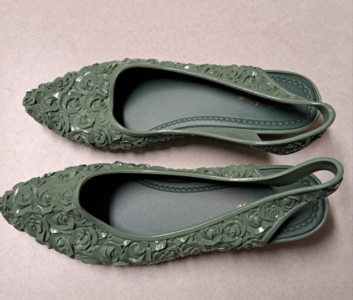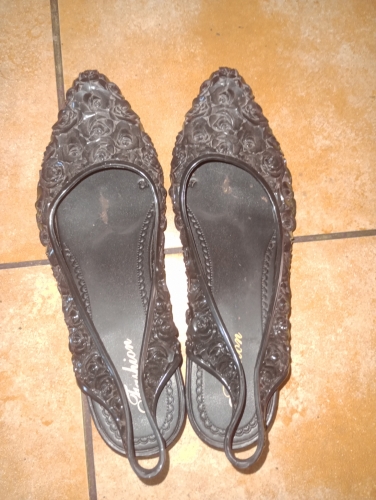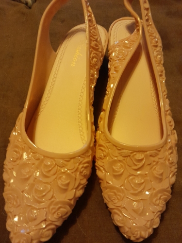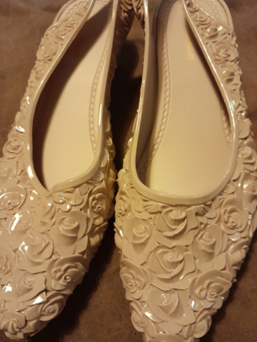 ..They are very sweet.. wedge heels..made of silicone jelly ..rose motif all over. they are lined with fabric so silicone is not next to skin . easy on easy off ..very comfortable. my feet swell sometimes from the weather humidity in my area..but these shoes still fit ..They are very sweet.. wedge heels..made of silicone jelly ..rose motif all over. they are lined with fabric so silicone is not next to skin . easy on easy off ..very comfortable. my feet swell sometimes from the weather humidity in my area..but these shoes still fit