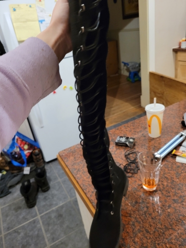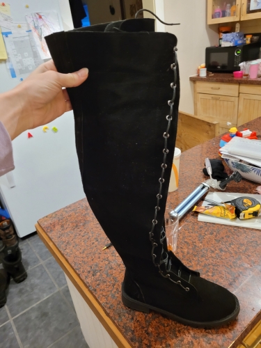 Amazing! I didnt hold out much hope when I ordered them but was seriously surprised. I have 36" slim legs and have never found a boot tall enough or tight enough at the top. These are perfect. 4" over my knee and laces are perfect. They also have a zipper on the side so easy to get . Following the foot size is important. Wish I could get these in leather. Amazing! I didnt hold out much hope when I ordered them but was seriously surprised. I have 36" slim legs and have never found a boot tall enough or tight enough at the top. These are perfect. 4" over my knee and laces are perfect. They also have a zipper on the side so easy to get . Following the foot size is important. Wish I could get these in leather.