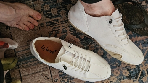 I bought the tan version. These shoes feel like slippers. The hug the foot. I replaced the inner soles that they came with because I need more arch support. People constantly as where I got them. The lacings are very elastic, and I fear they will break, but so far, no problem. I bought two extra black pairs I bought the tan version. These shoes feel like slippers. The hug the foot. I replaced the inner soles that they came with because I need more arch support. People constantly as where I got them. The lacings are very elastic, and I fear they will break, but so far, no problem. I bought two extra black pairs