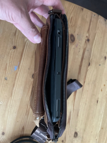 Very nice real leather. Just received it. If it was 10 mm longer one could close it when you put a 10.2” iPad in a cover in it. But the iPad still fits. Did not have time to try it, but looks and smells good. Very nice real leather. Just received it. If it was 10 mm longer one could close it when you put a 10.2” iPad in a cover in it. But the iPad still fits. Did not have time to try it, but looks and smells good.