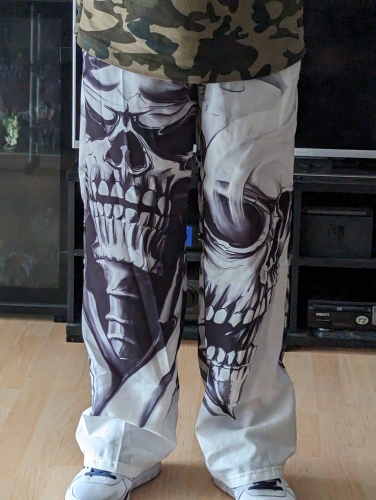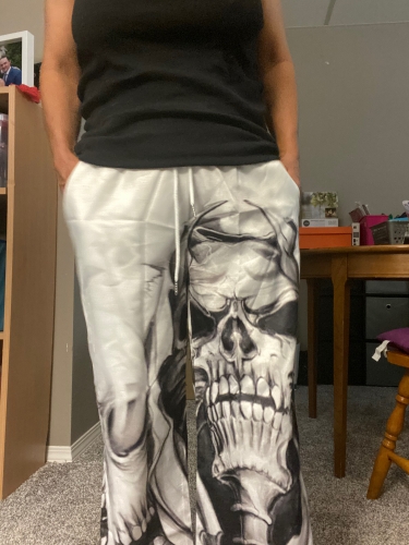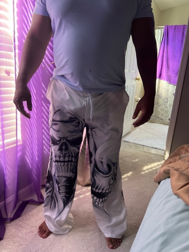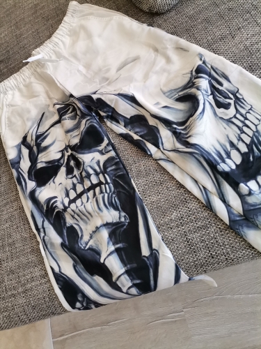 These are one of my favorites. i have always been about skulls. and the light weight material makes them perfect for wearing in Florida weather. I definitely plan on buying some other prints. infact my so. has asked me to gwt him a pair just not in white. These are one of my favorites. i have always been about skulls. and the light weight material makes them perfect for wearing in Florida weather. I definitely plan on buying some other prints. infact my so. has asked me to gwt him a pair just not in white.