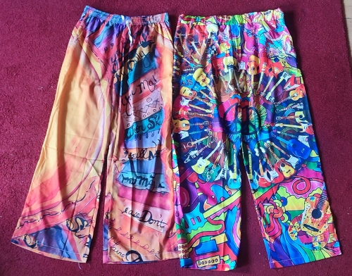 It pays to read reviews. Usually I have to order a size up on Tees, but not for these trousers. True to size, very colourful and perfect for stage wear. Everyone will know when Im on stage! It pays to read reviews. Usually I have to order a size up on Tees, but not for these trousers. True to size, very colourful and perfect for stage wear. Everyone will know when Im on stage!