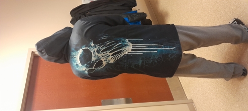 Definitely a Large, design is really cool. wish it didnt have the string along the waste. But overall a very nice hoodie. Definitely a Large, design is really cool. wish it didnt have the string along the waste. But overall a very nice hoodie.