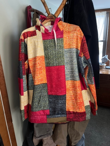 Sweat de très bonne qualité. Taille un peu grande aux manches mais rattrapable avec une bonne couturière. Sweat de très bonne qualité. Taille un peu grande aux manches mais rattrapable avec une bonne couturière.