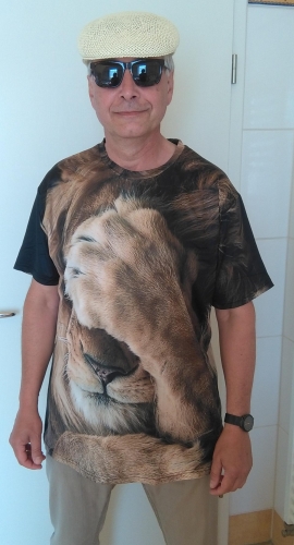I am a hot rodder and was looking for a specific car “T” shirt for hot rod shows that I am involved in. As I was looking through the massive number of “T” shirts I came across one that had nothing to do with my original search. I am a Leo and there was the lion covering his face with his paw, I had to have it. I forgot about the cars “T” shirt for the next couple of days and every time I went past my mail box I saw the lion, and then there he was. Delivery was fast, the fabric is soft a very very comfortable and the the lion is fantastic both coming and going…….. I am a hot rodder and was looking for a specific car “T” shirt for hot rod shows that I am involved in. As I was looking through the massive number of “T” shirts I came across one that had nothing to do with my original search. I am a Leo and there was the lion covering his face with his paw, I had to have it. I forgot about the cars “T” shirt for the next couple of days and every time I went past my mail box I saw the lion, and then there he was. Delivery was fast, the fabric is soft a very very comfortable and the the lion is fantastic both coming and going……..