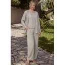 Combinaison Tailleur-Pantalon Trois Pièces Longueur au sol Robe de Mère de Mariée Sans manches Col Rond Élégant robe demoiselle d honneur Chiffon Dentelle Echarpe incluse avec Paillettes