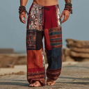 Homme Bloc de Couleur Patchwork Pantalons Pantalon décontracté Pantalons Amples Taille Moyenne Vintage Rétro Extérieur Vacances Taille élastique avec cordon de serrage Pantalon en lin avec poches Ét