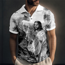 Homme Jésus Chrétien Polo Chemise de golf Manche Courte Polos Chemises à Col ancien Occasionnel Vêtements de vacances Vêtements de festival Tenues de fête Boutons Impression 3D Jaune Bleu Vert