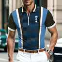Homme Pied-de-poule Rayé Polos à zip Chemise de golf Manche Courte Polos Chemises à Col Vêtement décontracté de travaile Vêtements de travail Tenue formelle Vêtements de festival Impression 3D Polo