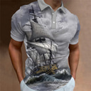 Homme Nautique Polo Chemise de golf Manche Courte Polos Chemises à Col ancien Occasionnel Vêtements de vacances Vêtements de bateau Tenues de fête Boutons Impression 3D Noir Blanche Kaki