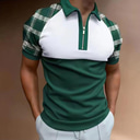 Homme POLO Polo quart de zip Casual du quotidien Col rabattu Quarter Zip Manche Courte Sportif Mode Plaid Zippé Quarter Zip Printemps été Standard Vert Abricot Bleu clair POLO |