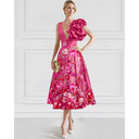 Ligne A Longueur cheville Robes de Cocktail Robes de soirée Élégant Floral Sans manches Col en V Mariage Formel Satin avec Broderie Poche |