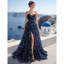 Ligne A Traîne Balayage Robes de Bal Éclat & Brillance Féerique manche longue Sans bretelles robe demoiselle d honneur Anniversaire Tulle avec Paillettes Fente |