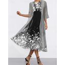 Femmes Robe Ensemble Robe en Chiffon Formel Fleuri Imprimé Robe maxi Demi Manches Col ras du cou Soirée Violet Gris Été Coupe Ample |