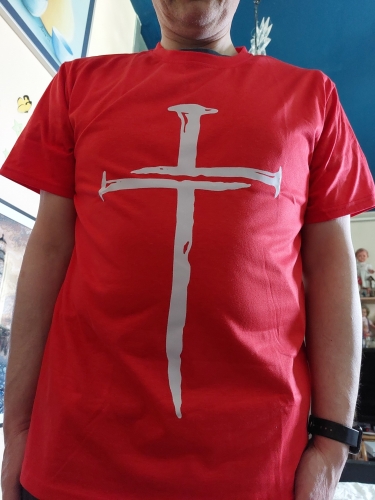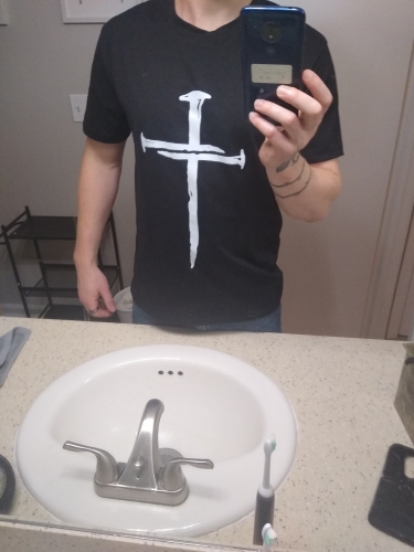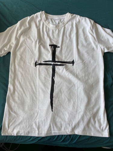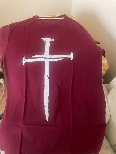 Overall I like this shirt, I just wish they had the cross printed up higher on the chest of the shirt like how its shown in the listings picture. As is, it looks a little weird on the stomach. Overall I like this shirt, I just wish they had the cross printed up higher on the chest of the shirt like how its shown in the listings picture. As is, it looks a little weird on the stomach.