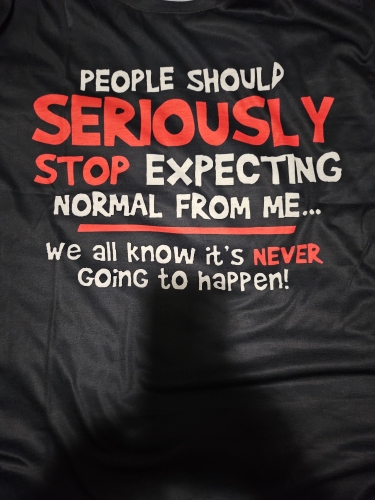 perfect, everyone says that this shirt is me for certain, and now I dont have to hide the fact, besides, who IS normal? perfect, everyone says that this shirt is me for certain, and now I dont have to hide the fact, besides, who IS normal?