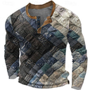 Homme Graphique Patchwork Chemise Henley T-shirt gaufré manche longue Impression 3D Mode Designer Occasionnel Sport en Plein Air Fête Festival Printemps & Automne Bleu Marron Vert Gris Henley T-shirt |