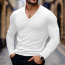 Homme T-shirt Débardeur Musclé T-shirt en tricot côtelé manche longue Col en V Été Uni Bande de Fosse Mode Designer Basique Col en V Vacances Rue Sortir Noir Blanche T-shirt haut de gamme pour homme |
