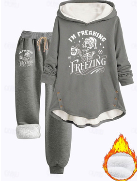 Γυναικεία πιτζάμα Σετ με επένδυση από φλίς 2 κομμάτια Φούτερ Αθλητικά Σαπούνια Ρουχισμός Σετ Πιτζάμες Φλίς Χνουδωτά Μακρυμάνικο Τοπ και Παντελόνι Εκτύπωση Γραφικό Άνετο Καθημερινό φόρεμα Διάσπαση