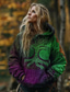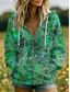 Γυναικεία Φούτερ με φερμουάρ Κουμπώσου Φερμουάρ Στάμπα Γραφική Γεωμετρικό Λαχούρι Κομψό Ζεστό Βίντατζ Μακρυμάνικο Με Κουκούλα Κανονικά μπλουζάκια Causal Σπίτι Δουλειά Πράσινο του τριφυλλιού