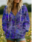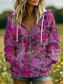 Γυναικείο Vintage 3D Print Boho Hoodie Patchwork Φούτερ με Δουλειά Λουλουδιών Zip Up Casual Χακί Ημέρας Patchwork Zip Πόρτα Ανοιχτό Μωβ Μωβ Καφέ Πράσινο Άνοιξη Φθινόπωρο
