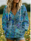 Γυναικεία Φούτερ με φερμουάρ Φερμουάρ Τσέπη Στάμπα Φλοράλ Γραφική Φυλής Μοντέρνα Καθημερινό Μακρυμάνικο Με Κουκούλα Κανονικά μπλουζάκια Causal Δρόμος Καθημερινή Ένδυση Μαρόν Σκούρο μπλε Μπλε Απαλό