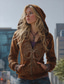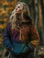 Γυναικεία Φούτερ με φερμουάρ Γραφική Ζώο δυτικός Etnic Καθημερινό Μακρυμάνικο Με Κουκούλα Κανονικά μπλουζάκια Causal Δρόμος Βαθυγάλαζο Μαύρο Γκρίζο Φθινόπωρο Χειμώνας