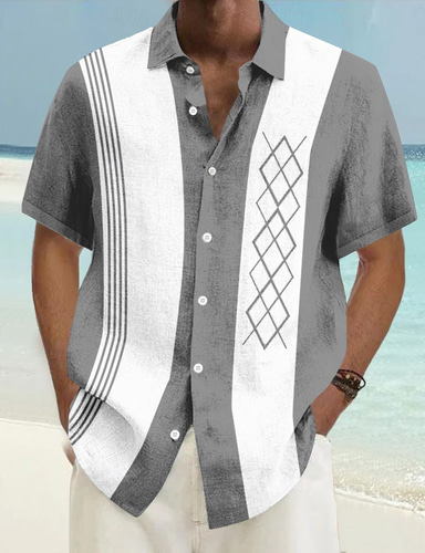 Ανδρικά Ριγέ Γεωμετρικά σχήματα Γεωμετρία Πουκάμισο Πουκάμισο μπόουλινγκ Πουκάμισο με κουμπιά Κοντομάνικο Αθλήματα Μοντέρνα Κομψό στυλ street ΕΞΩΤΕΡΙΚΟΥ ΧΩΡΟΥ Causal Αργίες Καλοκαίρι Άνοιξη