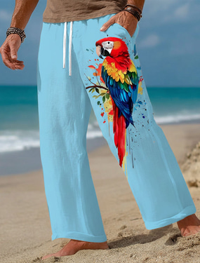 Ανδρικά Ζώο Παπαγάλος Παντελόνια Casual παντελόνι Φαρδύ παντελόνι Μεσαία Μέση Χαβανέζα ΕΞΩΤΕΡΙΚΟΥ ΧΩΡΟΥ Διακοπές Ρούχα παραλίας Ελαστική μέση με κορδόνι Παντελόνι σε σχήμα λινού με τσέπες