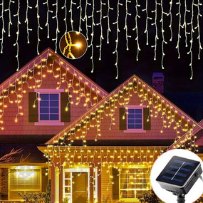 LED Φωτάκια Σταγόνες 3/5M 256LED Φωτάκια Νεράιδας Εξωτερικού Χώρου Ηλιακής Ενέργειας Κουρτίνα Φωτάκια για Παράθυρο Πάρτι Κήπου Εορταστική Διακόσμηση Με Τηλεχειριστήριο