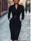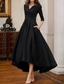 Μαύρα Σαλοπέτα Κοκτέιλ Εξαιρετικά Επίσημα Επισκέπτης Γάμου Τσάι Μήκος Μακρύ Μανίκι Κολάρο Μπλουζάκι Ζώνη Σατέν Ελαστική Κρέπα Με Χώρισμα
