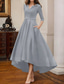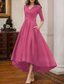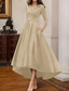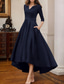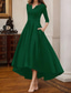 Α-Γραμμής Κοκτέιλ Φορέματα Elegant Φόρεμα Επίσημο Γάμου Μήκους Τσαγιού Υψηλό-χαμηλό Φόρεμα Μισά Μανίκια V Λαιμόκοψη Στρες Σατέν με Παγιέτες Τσέπες