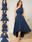 Φόρεμα Μητέρας της Νύφης Φόρεμα Εκλεπτυσμένο Γιορτινό Απλό Λαιμό Στεναρού Σχήμα Ασύμμετρο Μικρό Μανίκι με Λακή