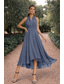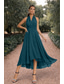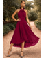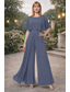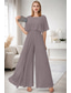 Φόρεμα Κοκτέιλ Δύο Κομματιών Γάμου Ακτής Elegant Γάμου Engagement Μήκος Αστέρων Αόρατο Jewel Neck Fall Wedding Καλεσμένη Σατέν με Ράμματα Μοναχικών Χρωμάτων